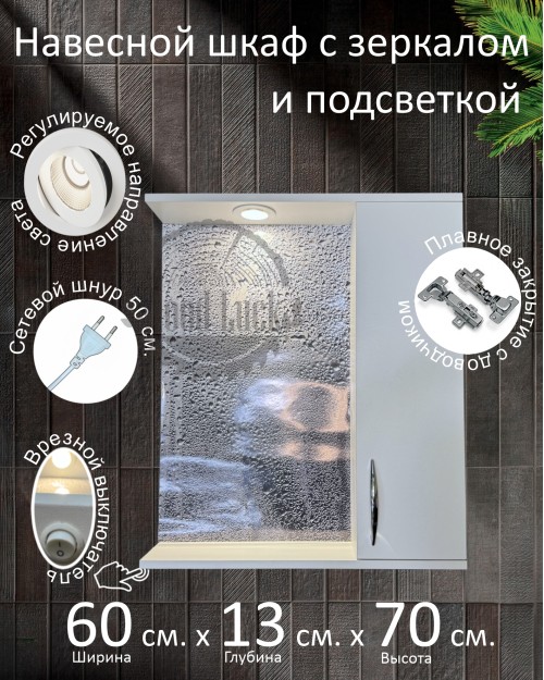 Навесной шкаф с зеркалом и подсветкой — идеальное решение для функционального обустройства вашей ванной комнаты. Этот компактный и стильный предмет мебели сочетает в себе удобство хранения и современный дизайн, который прекрасно дополнит любой интерьер.