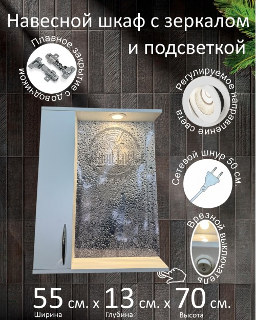Навесной шкаф с зеркалом и подсветкой — идеальное решение для функционального обустройства вашей ванной комнаты. Этот компактный и стильный предмет мебели сочетает в себе удобство хранения и современный дизайн, который прекрасно дополнит любой интерьер.